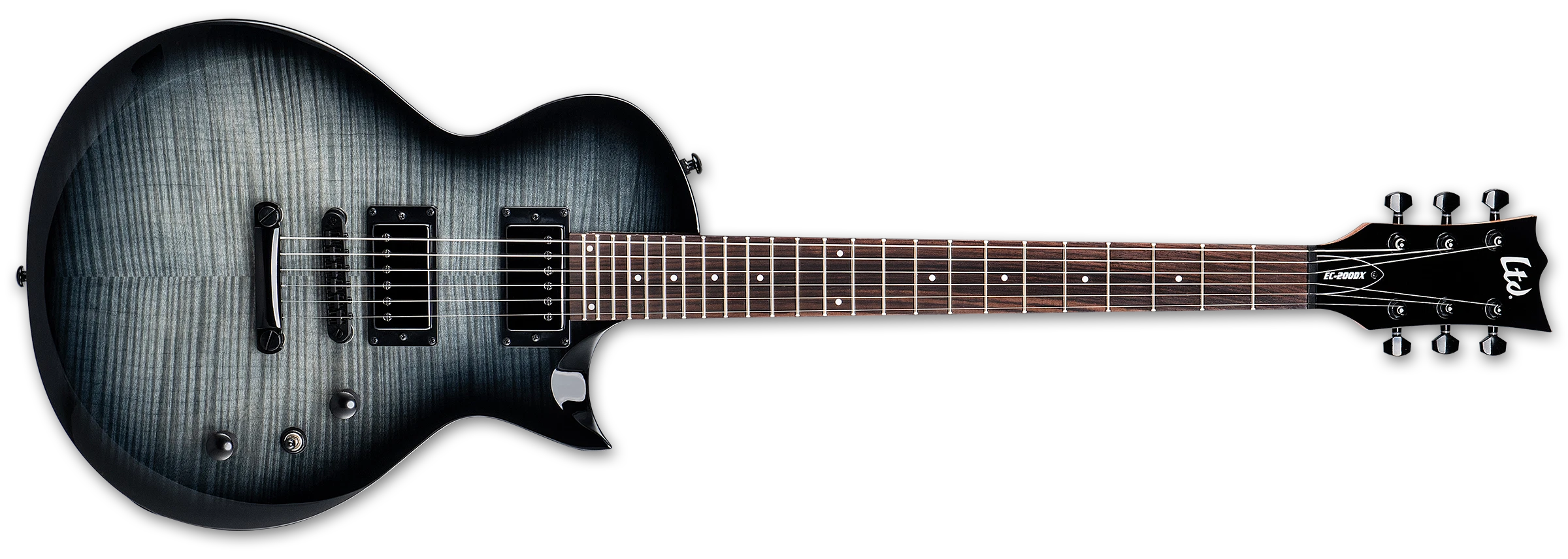 Esta guitarra incluye un puente y cordal estilo TOM, 24 trastes extra jumbo, incrustaciones de puntos y herrajes cromados negros. La EC-200DX incluye un juego de nuestras aclamadas pastillas humbucker ESP LH-150 con cubiertas cromadas negras a juego en las posiciones del puente y el mástil, que proporcionan un sonido potente y excelente para todos los géneros musicales.